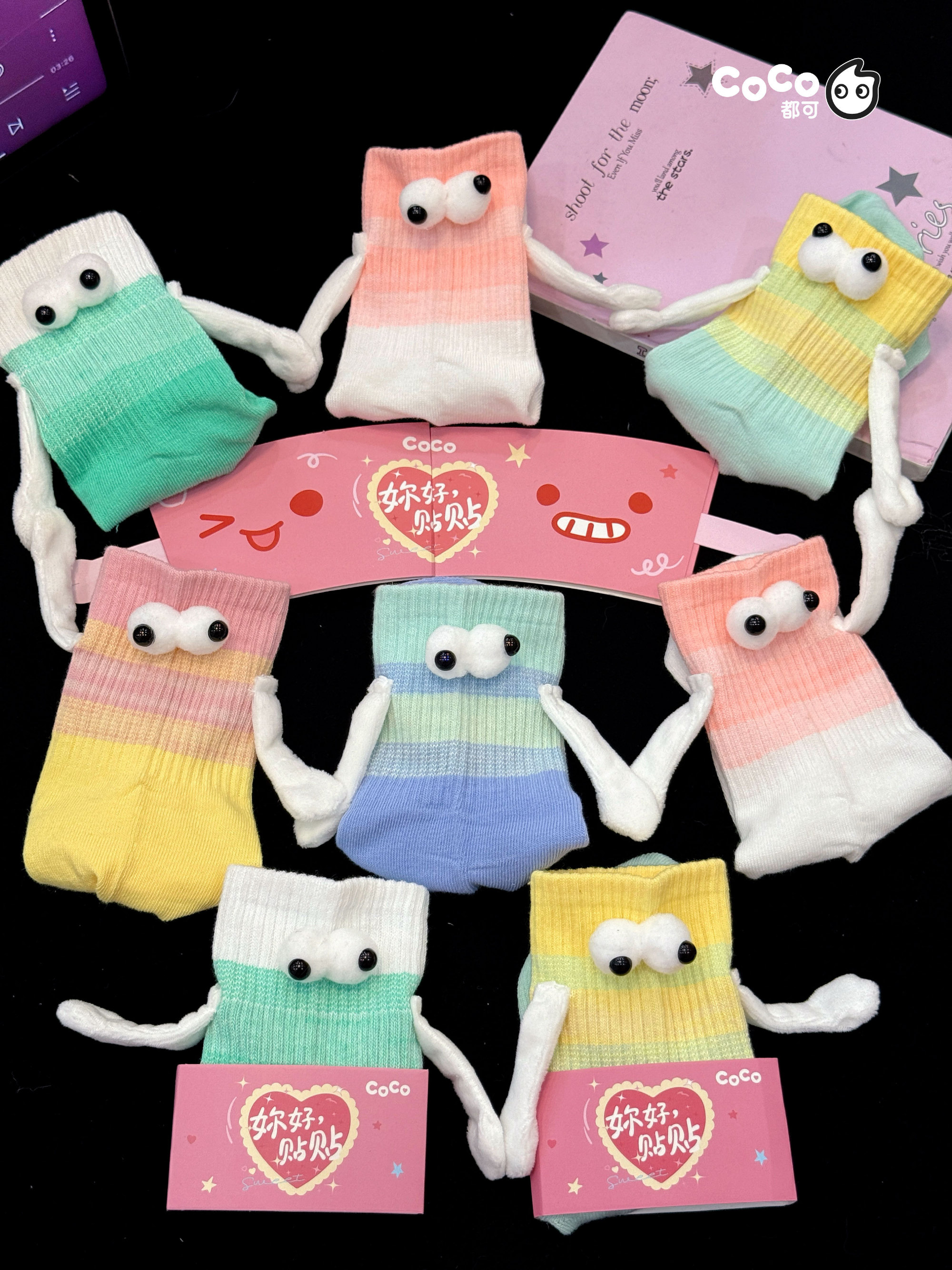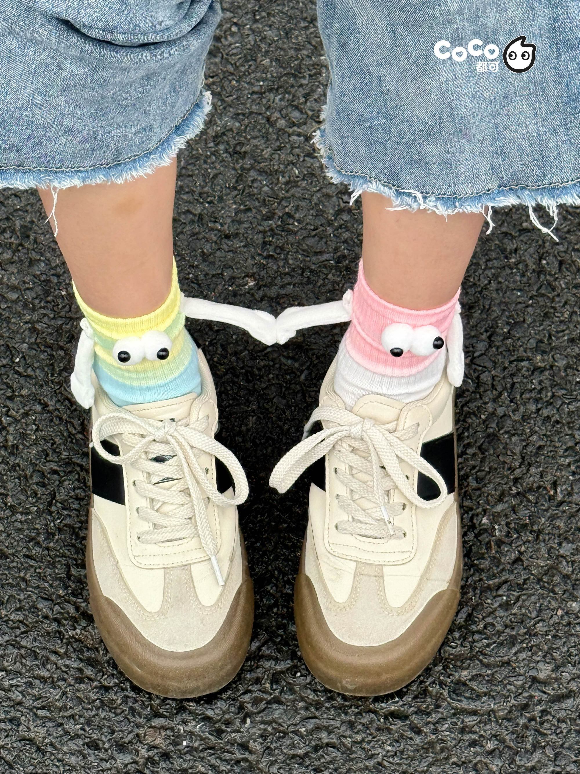 其中,趣味十足的贴贴袜尤为出彩——袜边的小手内置引力磁场,当靠近时,两只袜子的小手会自然相吸「牵手」,通过物理互动生动传递「好朋友就是要手牵手」的美好情感。这种将产品体验延伸至肢体互动的创意,不仅强化了闺蜜消费的场景感,更鼓励女性在忙碌生活中与挚友共享「贴贴」的治愈时光与情绪依靠。