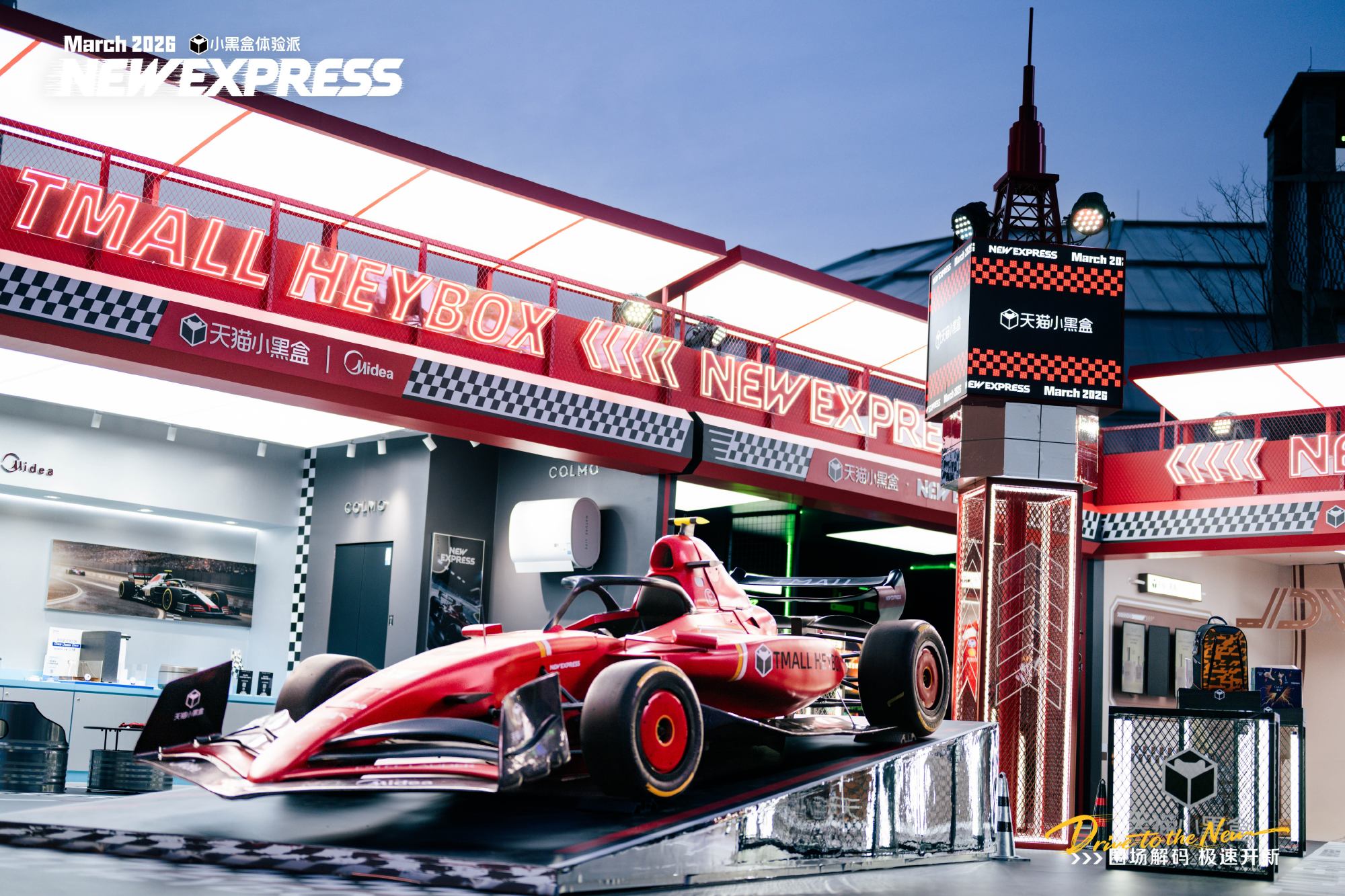 在线下空间中,天猫小黑盒将 F1 元素全方位融入体验空间,红色主题装置、悬浮赛车模型等打卡地标随处可见,随手一拍即出杂志质感大片。Tommy Hilfiger、美的、雅诗兰黛、PUMA、雷蛇等品牌齐聚展区,并结合各自调性打造差异化体验空间——从美式复古赛道俱乐部,到科技生活美学,再到极速机能风打卡点,共同放大赛车文化与潮流审美的共振感。