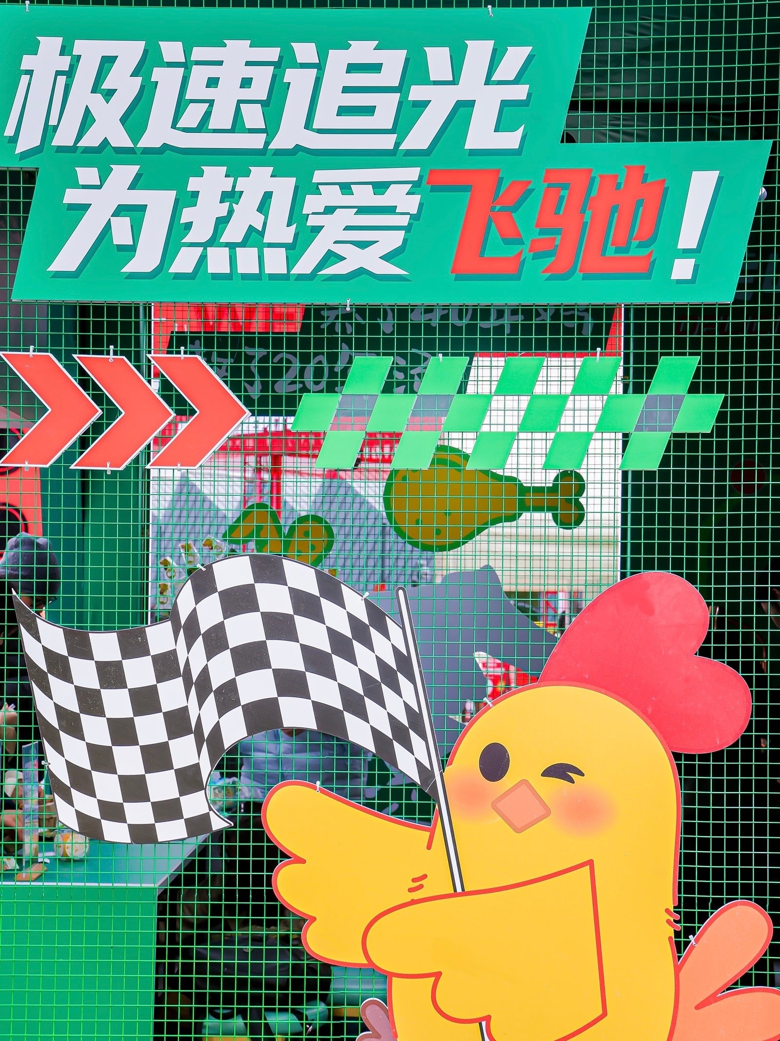 老乡鸡采取了「分会场预热 + 主赛场爆发」的双线策略,最大化品牌曝光: 3 月 8 日持续至 3 月 15 日格子旗嘉年华,这里不仅是美食摊位,更设置了「花棉袄」鸡仔玩偶打卡点,通过帆布袋、扑克等限量周边吸引人流,提前锁定车迷关注。