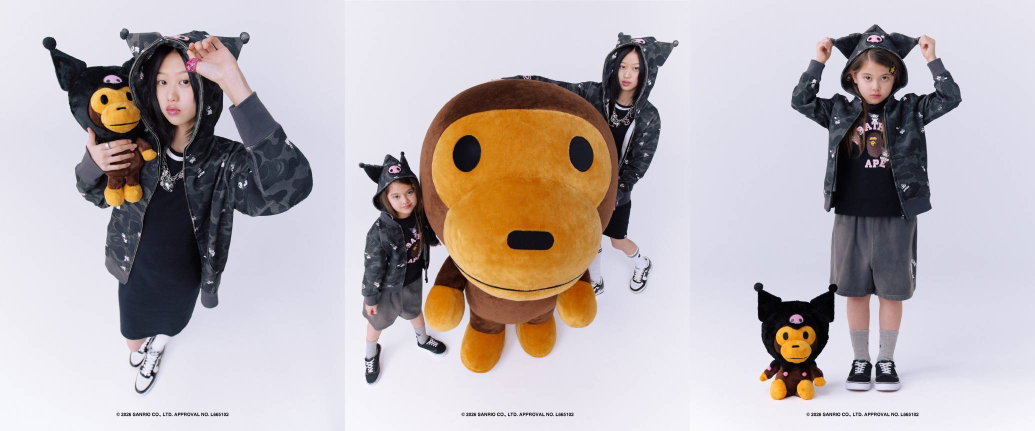 不仅如此,为庆祝系列萌趣登场,BAPE 还在 3 月 14 日北京三里屯太古里 BAPE STORE 举行线下见面会,品牌吉祥物 BABY MILO 携手 HELLO KITTY 和 KUROMI 人偶联萌亮相,与到场粉丝近距离互动合影,共同见证这一跨界时刻。此外,香港 BAPE STORE 1881 HERITAGE 也将同步参与庆祝活动,营造浓厚的潮流派对氛围。