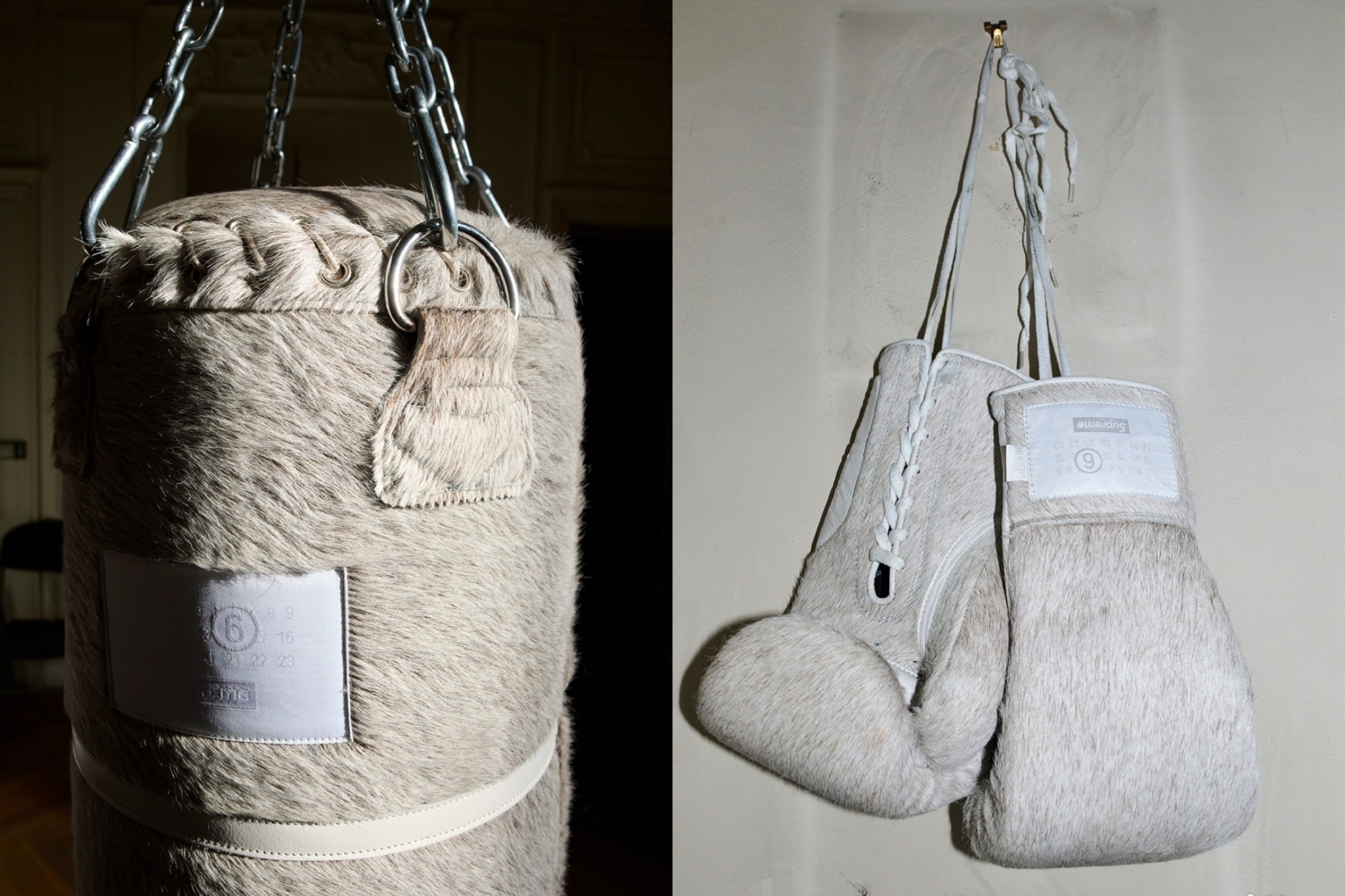 在与拳击装备品牌 Everlast 的合作中,这种表达更为直接——拳击手套与沙袋被覆以柔软毛绒,原本强调力量与对抗的物件被转化为轻盈、甚至略带荒诞的存在。这种反向处理延续了 Margiela 的反叛思路,通过改变材质与语境,让物件脱离既定意义。