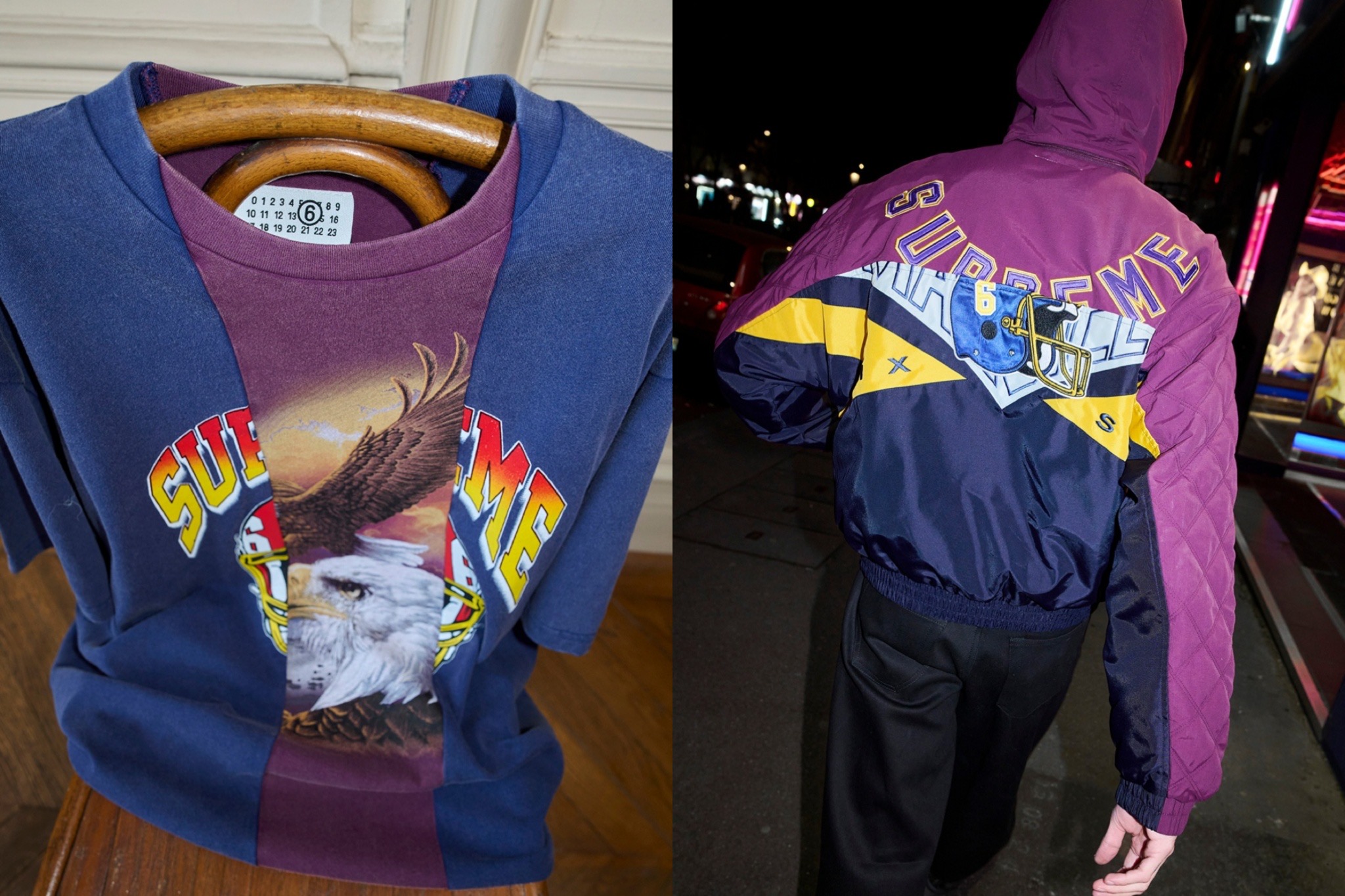 从街头符号到解构实验,Supreme 与 MM6 的合作,并非简单叠加双方的标志性元素,而是在熟悉的轮廓中植入错位与反差,让日常单品在触感与视觉的偏移中,生成新的观看方式。[SocialBeta]
