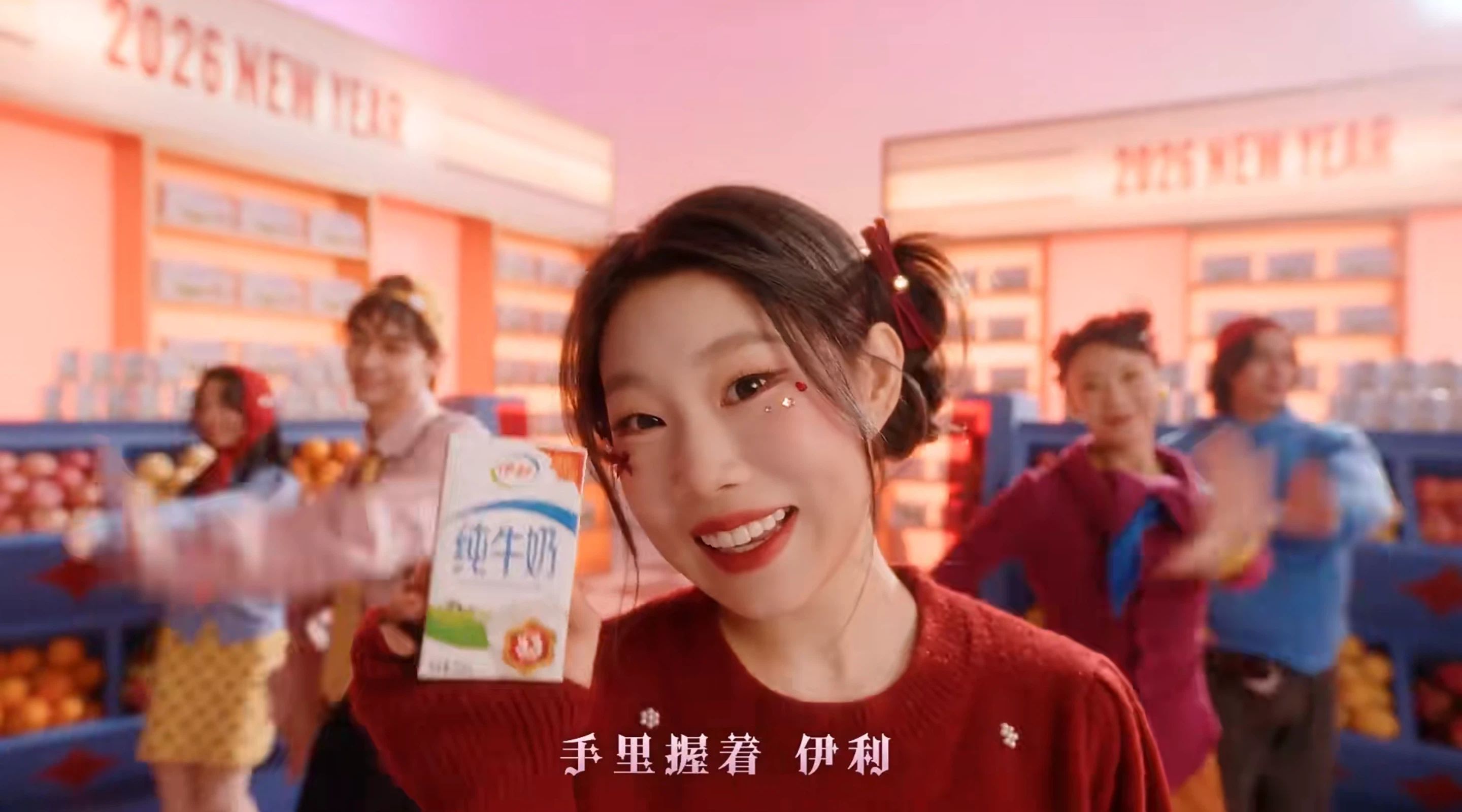 此次,品牌聚焦年轻化传播与场景化营销,将全网颇具热度的洗脑神曲《美美桑内》改编为新春专属曲目《美美新年》,以创意音乐短片 MV 的形式切入春节场景。整体内容贴合春节阖家团圆、走亲访友的浓厚节日氛围,用朗朗上口的旋律和接地气的新春画面,自然融入品牌产品升级核心信息,让大众在愉悦的视听体验中,清晰感知伊利的产品品质升级亮点。