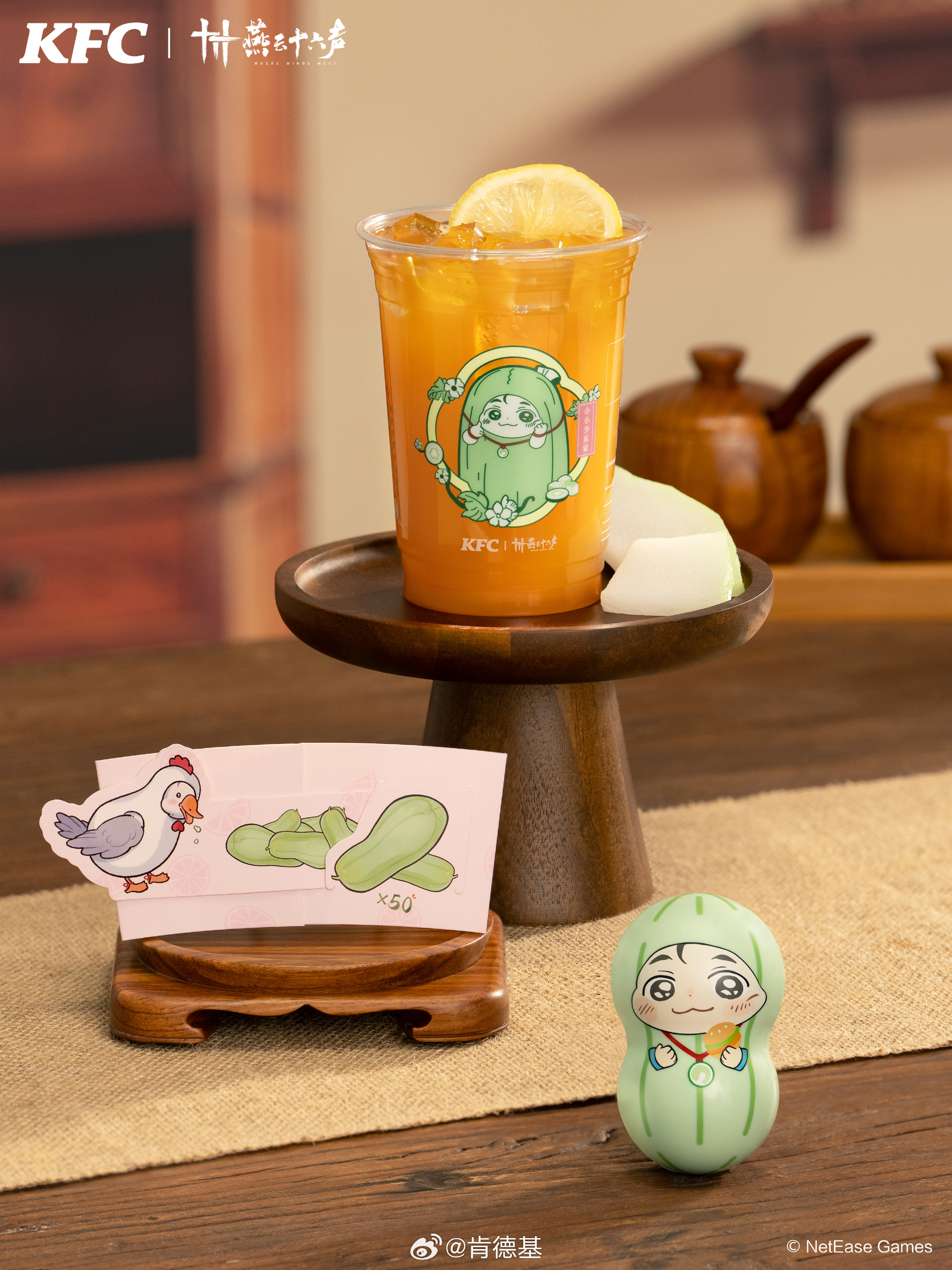 而在线下,肯德基也推出了老汴京鸡肉卷、脱骨五味鸡等创意套餐,消费者购买联动套餐即可获得系列收藏周边,包括游戏内的宝箱头饰、腰挂、和主题聊天气泡,特别设计的实物「锦囊妙叽耳机包」与「少冬瓜不倒翁也将作为赠品登场,兼具实用性与收藏价值。