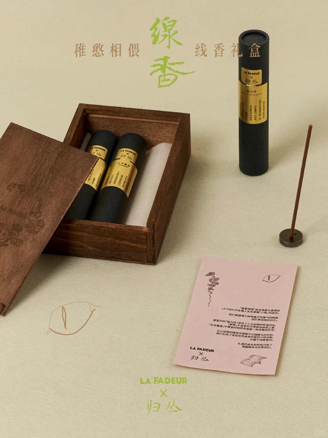 据悉,「稚憨相偎」联名线香礼盒的创作灵感,源自 LA FADEUR 主理人失去爱猫「小黑」的经历。而礼盒的命名也颇具深意:「稚」是指生命最初的样子,「憨」承载着小生命毫无防备的信赖,「相偎」则定格了它们蜷在脚边、温柔相伴的美好瞬间。品牌试图借由这组命名,把关于宠物陪伴的记忆,化为一种更具体的纪念方式。