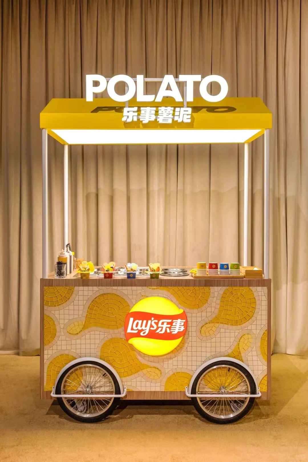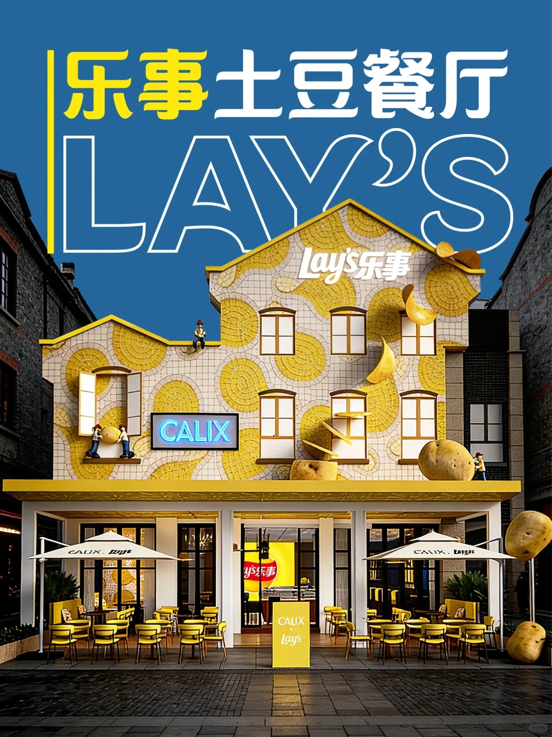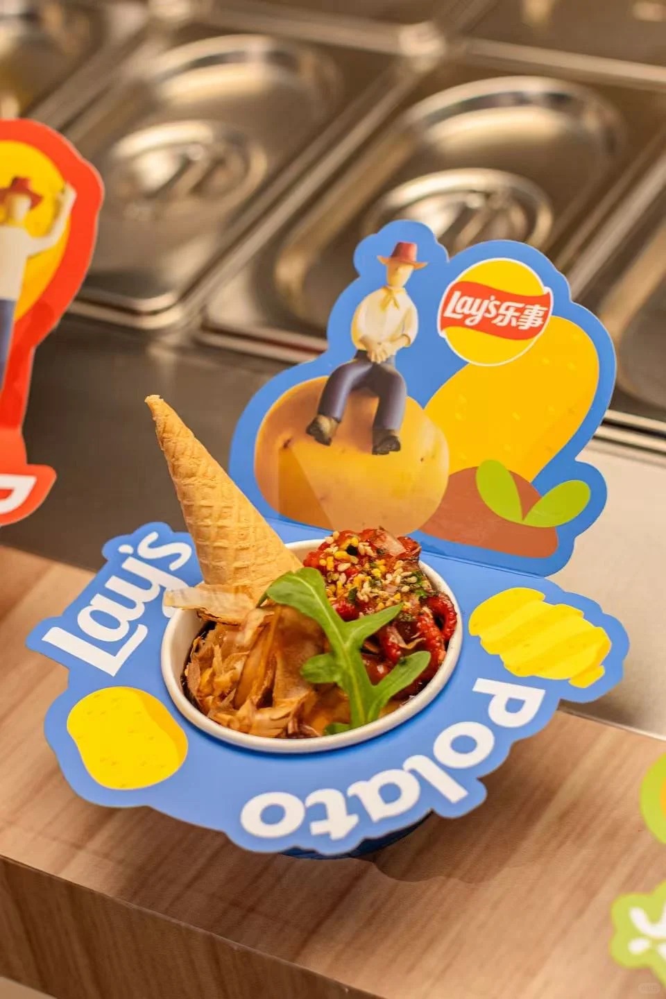 值得一提的是,前不久乐事刚围绕春季土豆展开了一轮传播。品牌不仅邀请宋雨琦和相声艺术家于谦拍摄广告片,以一句「多新鲜呐」强化新品「春收马铃薯片」24 小时鲜切的卖点,还让宋雨琦走进湛江农场亲自挖土豆,把「新鲜」从广告表达延伸到产地叙事。此次土豆餐厅的落地,也是这波春季 campaign 的线下延续。