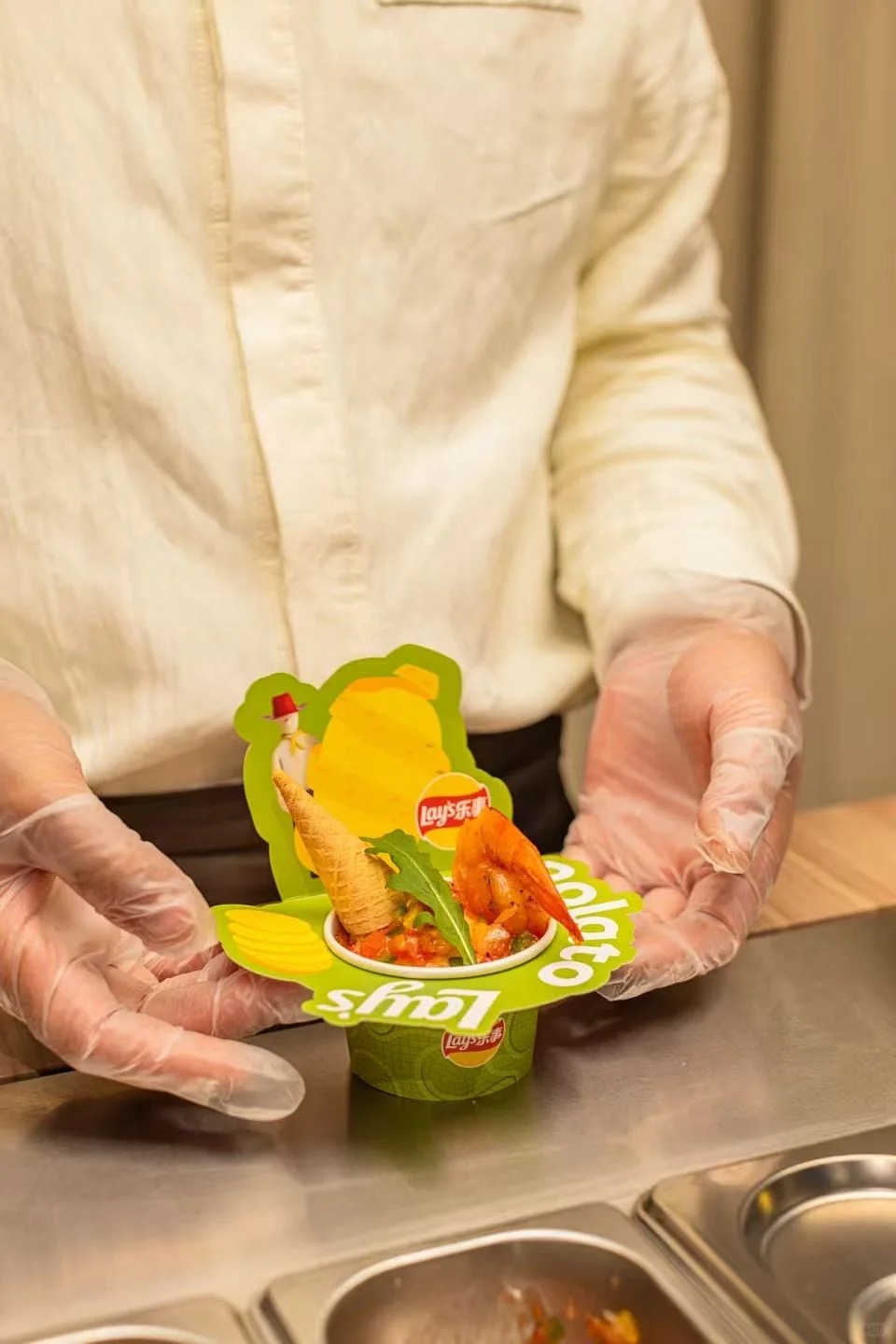 除此以外,作为 2026 秋冬上海时装周官方合作伙伴,乐事也和 8ON8 推出限定 LOOK,并将秀场灵感延伸至餐厅空间,在餐饮场景中完成一场「食」与「尚」的跨界表达。