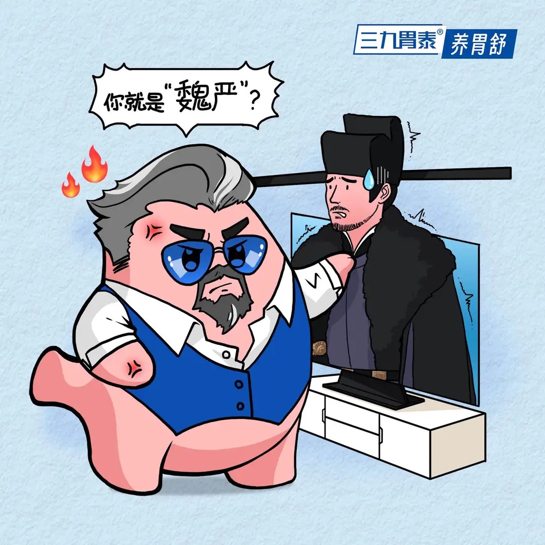 尤其是三九胃泰,从前期跟到后期,成为了观众们的好搭子。前期它时不时地也会抖包袱、玩梗,活人感十足。男主主前期化名「言正」,谐音「炎症」;男主舅舅叫「魏严」,谐音「胃炎」。三九胃泰敏锐地捕捉到了这些讨论,开始了自己天才般的创作欲——
