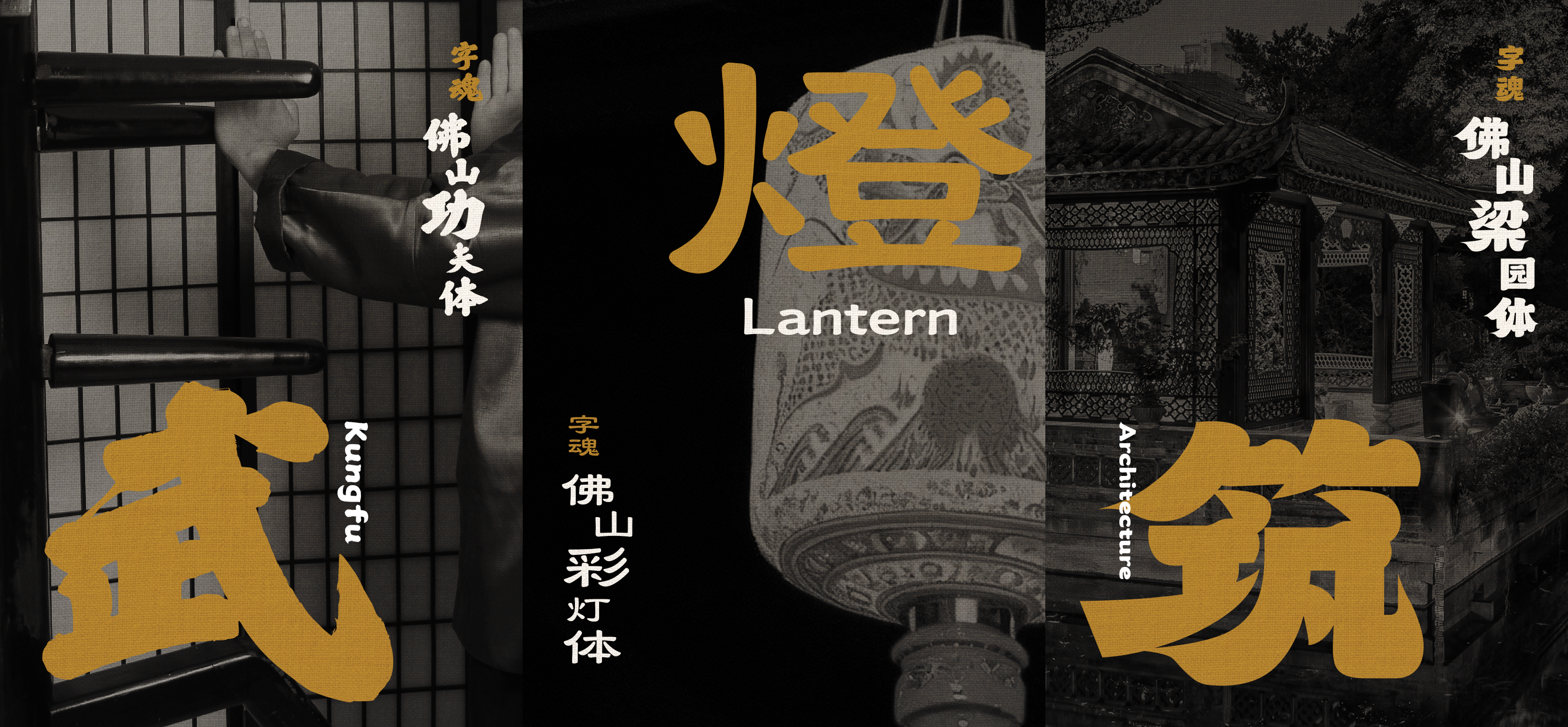 从设计上看,三款字体分别对应佛山不同文化切面。其中,「字魂佛山功夫体」以雄健有力的书写风格回应「功夫之乡」的城市气质,「字魂佛山梁园体」从梁园建筑中提炼出岭南园林的线条韵味,「字魂佛山彩灯体」则从传统彩灯绘字中发展出更适配当代传播的视觉语言。三款字体均采用 GB2312 标准字符集,还配备风格统一的西文字母,保障了多元语境下的视觉整体性,让佛山故事能以更国际化的视觉语言讲述。