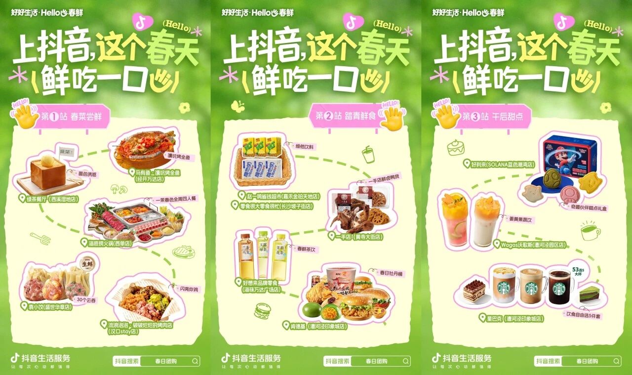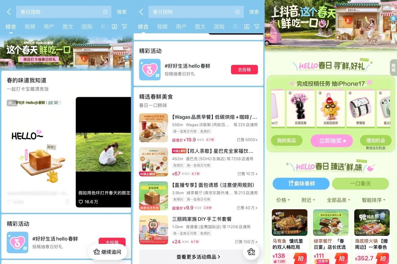 4 月 1 日至 7 日,抖音生活服务精准捕捉这一波春季时令消费趋势,推出「好好生活・Hello 春鲜」活动,以「上抖音团购,这个春天『鲜』吃一口」 为主题,将时令鲜食体验融入春日生活场景。
