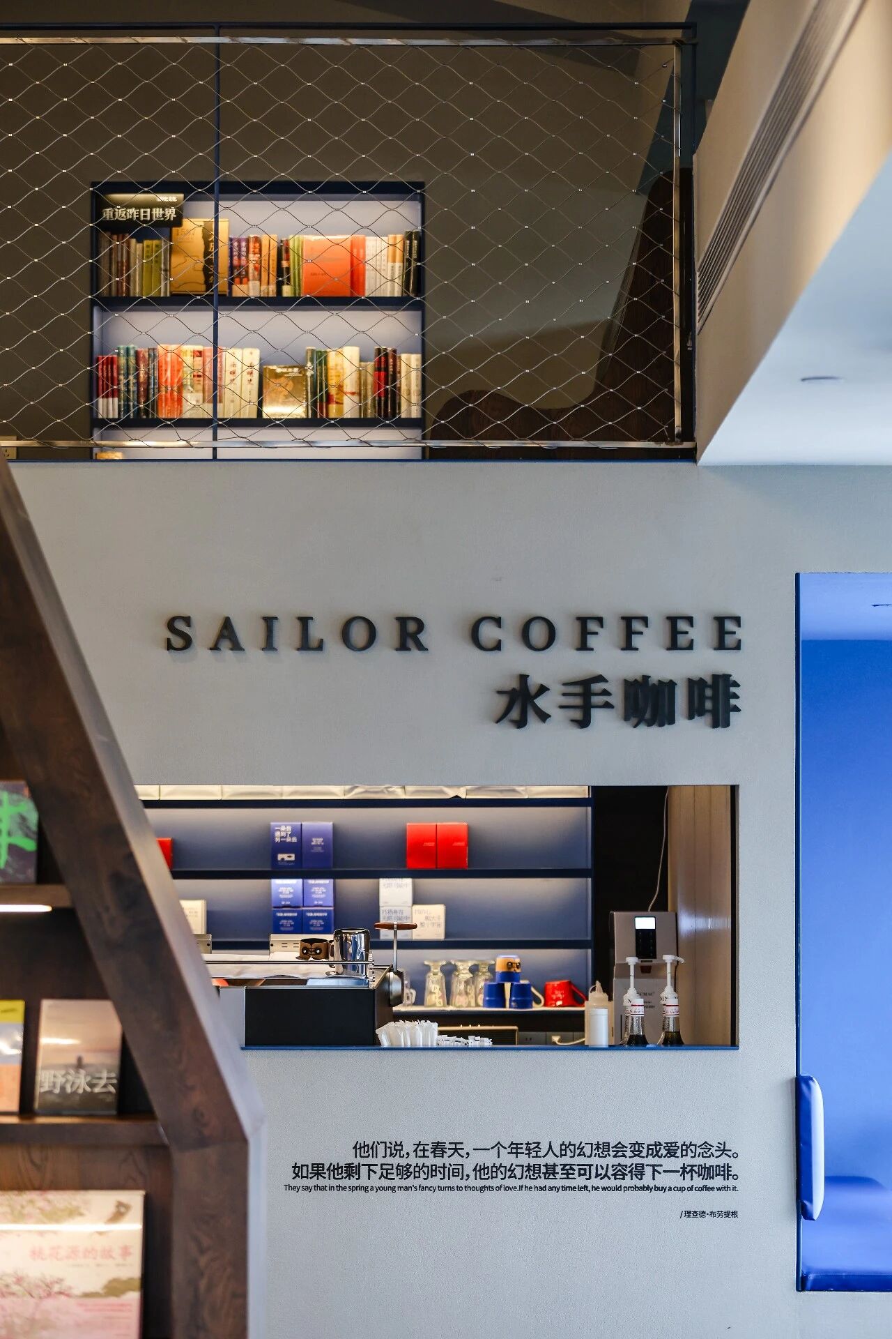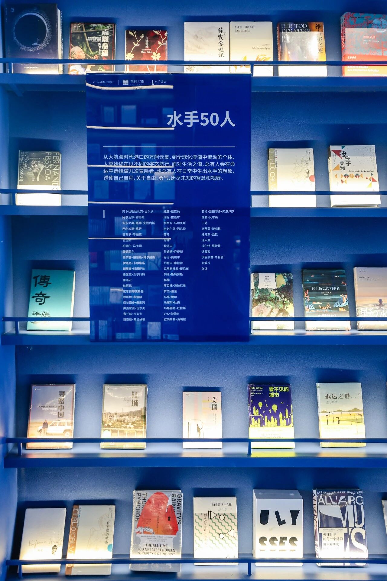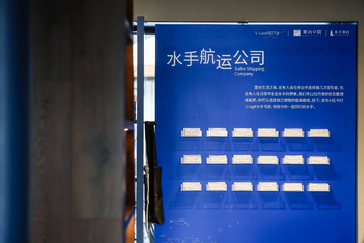 除精选书籍外,店内还打造了多个特色文化场景:「水手 50人」背景墙汇集文学家、思想家、探险家的相关介绍,为读者搭建「文学海图」;「水手航运公司」将 12 位作家信息整理成船票,读者可选取心仪「航线」,通过社交平台分享寻找同好。同时,书店配套水手咖啡 SAILOR COFFEE,未来还将推出文化沙龙、作家签售等活动,探索多元形式的融合。