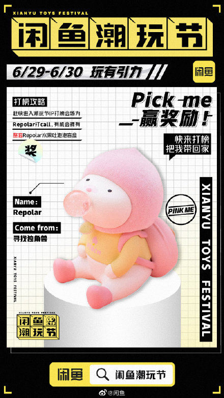 闲鱼将在 6 月 29 日- 30 日以「玩有引力」为主题打造首届潮玩节,并邀请潮玩爱好者担任会玩官,与消费者一起进入潮玩世界。用户在闲鱼搜索「闲鱼潮玩节」就可以进入会场参加活动,除了 1 元玩全场外,还能为自己喜欢的潮玩 IP 打榜,玩法多样。[SocialBeta 报道]