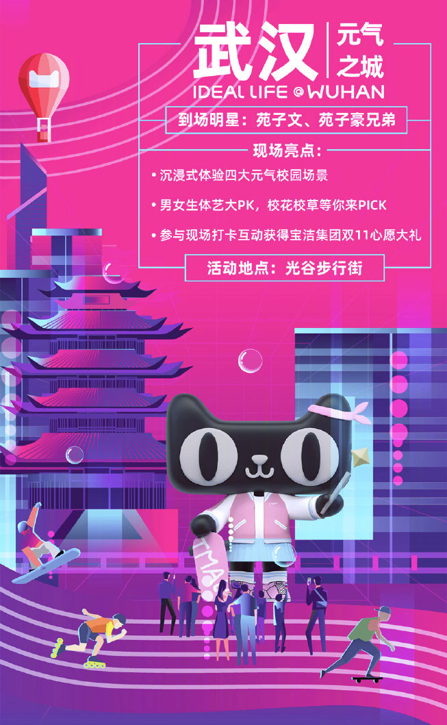 天猫「理想之城」线下狂欢从今日至 11 月 11 日登陆全国各大城市,许愿猫空降线下 11 城 11 街,带来沉浸互动、名人聚集和惊喜福利。针对不同的城市,「理想之城」有不同的主题及活动,如「5G 之城」深圳与王大陆探索生态智能场景,「活力之城」杭州呈现活力潮服秀,「冬奥之城」北京与张继科、苏炳添邂逅冬奥吉祥物,还有 11 座美食之城带来地域美食,把许愿猫带到消费者身边,让愿望 11 实现。[SocialBeta 报道]