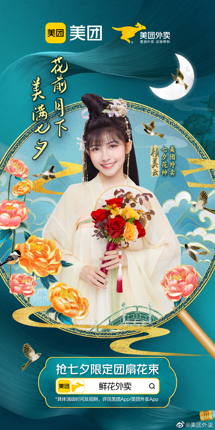 今年七夕,赖美云化身美团外卖七夕「花神」,带来七夕限定团扇花束,并开启七夕鲜花外卖活动,帮助用户「送花说爱」。除鲜花外,赖美云和美团外卖同时携手带来酒水、美妆、糖巧、数码等多种品类外卖活动,帮助用户解决七夕送礼难题,共创美满七夕。[SocialBeta 报道]